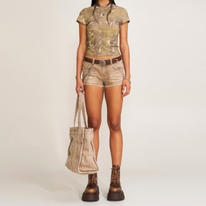 SMFK ハリケーン フェード スリム スポーツ Tシャツ ウエスト デザイン トップ Tシャツ 新しいスタイル
