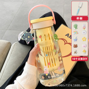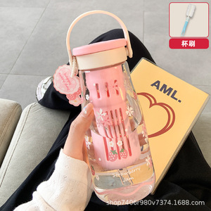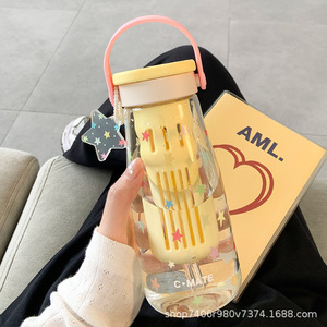 女の子向けのかわいいウォーターカップ、見栄えの良いガラスカップ、お茶と水の分離、ポータブルオフィスダブルドリンクカップ、夏の新スタイル2025