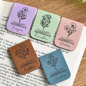 跨境雕刻激光方形磁铁书签 pu皮革软磁书签 阅读者礼物个性化书签