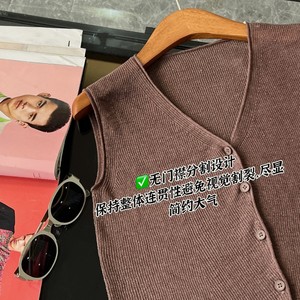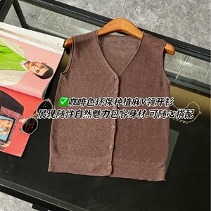 キャビネットと同源!ウッドキャビネット1.9K~XiaoheピュアリネンノースリーブVネックニットカーディガンベスト2025夏新作