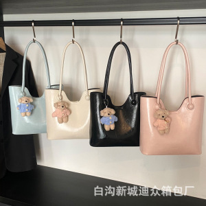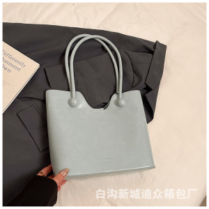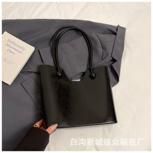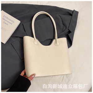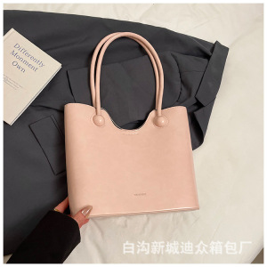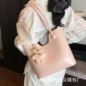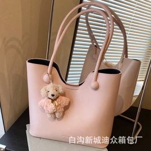 韩版大容量休闲托特包包女2025春季简约纯色百搭单肩包通勤子母包