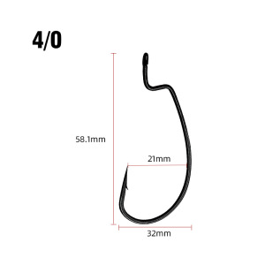 フィッシュフック4X高炭素鋼平型カーブフックルアーソフトベイトフックテキサスフィッシングセット淡水・海水兼用フック形状