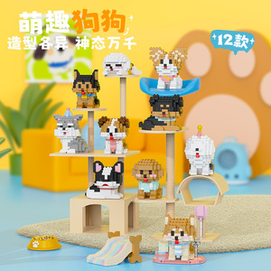 2025 新しい Lele Brothers かわいい猫と犬の漫画ビルディングブロックは、レゴ子供の教育用組み立てペットギフトと互換性があります