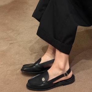 Xiaoxiangfeng 小さな革靴 2025 春夏新作包頭バックストラップサンダル黒ローファーシングルシューズサンダル