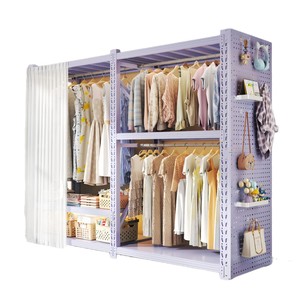 棚ワードローブオープン洋服ラック簡単組み立て床置き防塵スチール多層収納ラック賃貸住宅洋服ラック