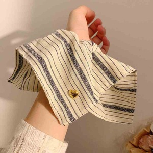 6#ベージュダイヤストライプゴールドラブスクエアスカーフ 約22cm