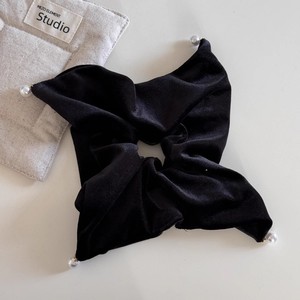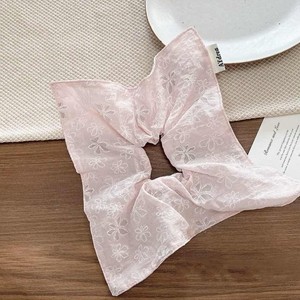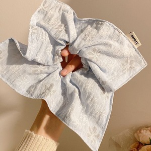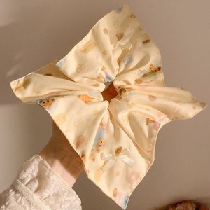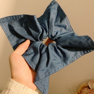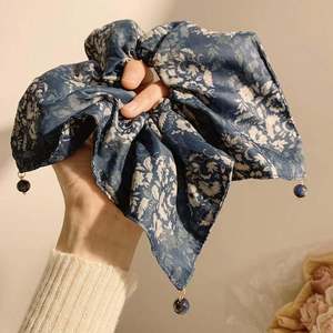 3#ダークブルーバタフライ 約20cm ベージュスクエアスカーフヘアゴム