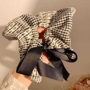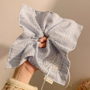 21#白黒小チェック柄約26cm角タオル大腸ヘアゴム