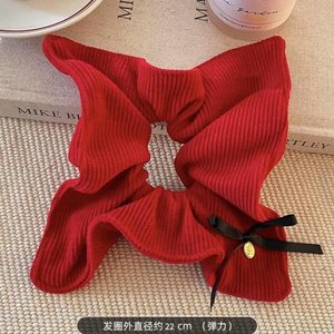 19#正月赤リボン付きスクエアスカーフ 約22cm