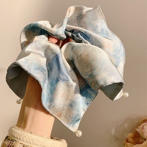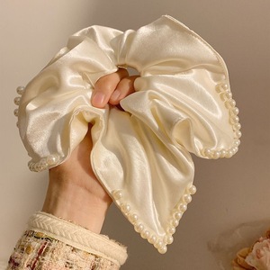 フレンチサテンパールスクエアスカーフヘアゴム女性用2025新しいスタイルハイエンド気質甘いロープローポニーテールヘアロープ
