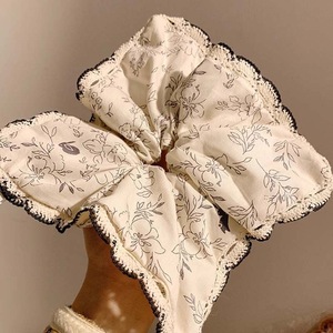 32#黒とグレーのリボンプリントレーススクエアスカーフ約22cm
