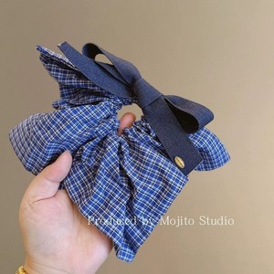 34#ブルーチェック柄リボン ゴールドラベル 約22cm