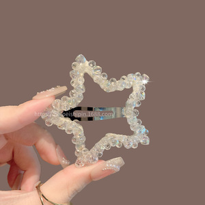 絶妙なクリスタルビーズ五芒星ヘアピンライト高級ハイエンドサイドクリップ新しいエレガントな前髪クリップヘアピンヘアアクセサリー