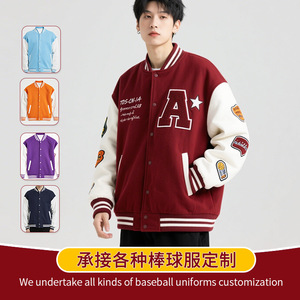 野球ユニフォーム風ロゴ入りスウェットシャツ、フライングシングルブレストカーディガン、作業服風刺繍柄ゆったり型秋冬