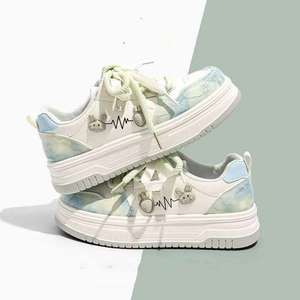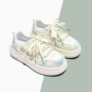女性用ライトグリーンスニーカー、2025年夏と秋の新しいスタイル、ウサギとキャロットの学生、見栄えの良い、非常に柔らかい厚底の白い靴