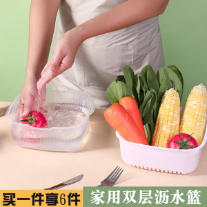 新しい二重層の厚みのある野菜バスケットキッチン果物と野菜家庭用フルーツプレート水フィルター野菜排水リビングルームプラスチックフルーツ