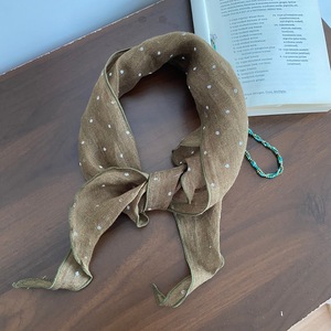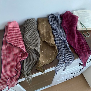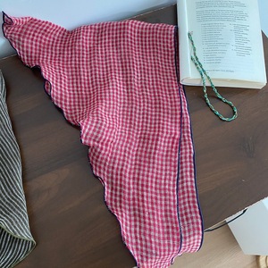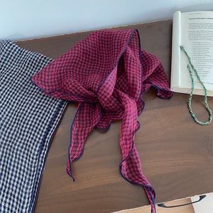 女性用フルリネン三角スカーフ、レトロチェック柄シルクスカーフ、芸術的で多用途な小さなスカーフ、小さなショール、装飾スカーフ、ベルト