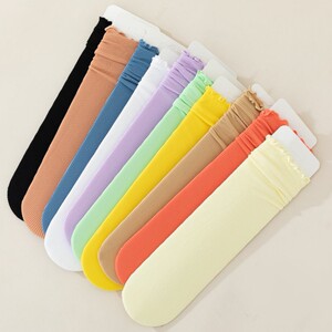女性用ソックス、薄いカールソックス、春と夏の通気性と多用途のレースソックス、2024新しいスタイル