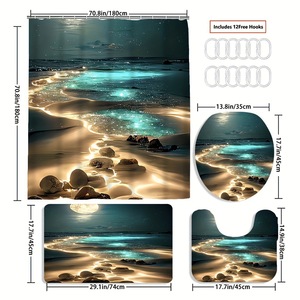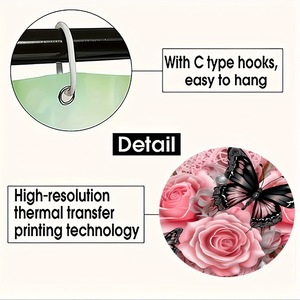 クロスボーダー Amazon バラ蝶 防水・防カビ シャワーカーテン 浴室専用プリントカーペット トイレマット 4点セット