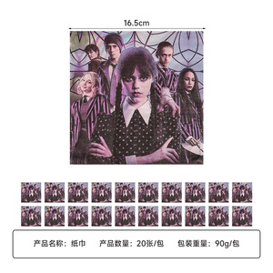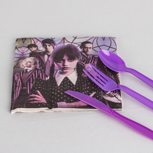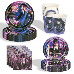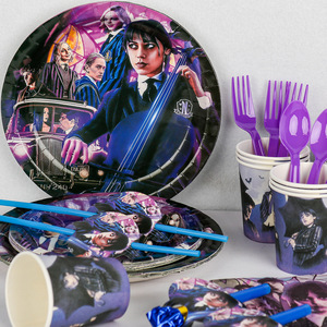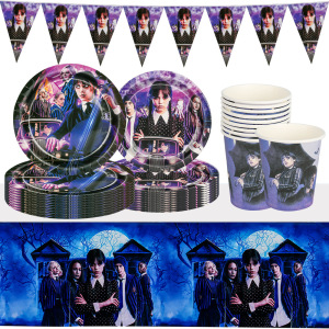 星期三生日女孩生日派对用品装饰一次性餐具纸盘纸杯纸巾拉旗桌布