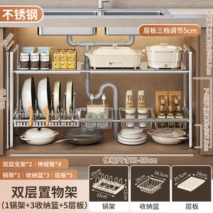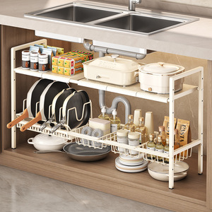 Source Kitchen 格納式シンク下収納ラック ホームキャビネット レイヤードラック ポットラック 多機能ポット収納ラック