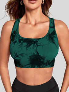 ヨーロッパとアメリカのヨガ、ランニング、フィットネス、タイダイ染め、シームレス、胸パッド付き、レディース、I字型スポーツベスト