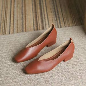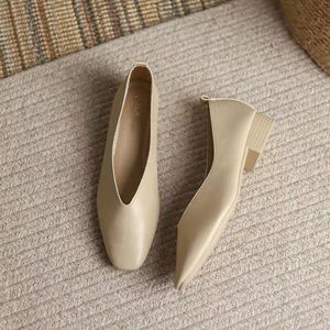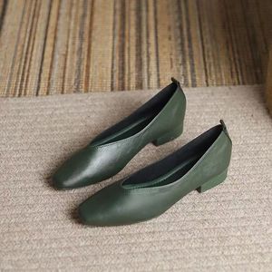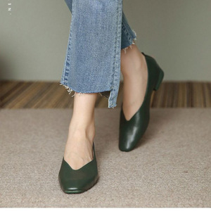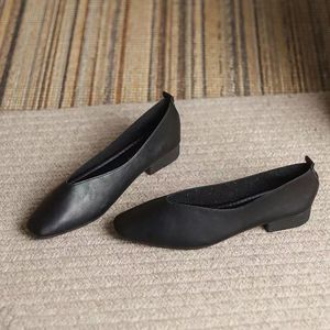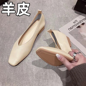 フレンチスタイルの優しいソフトレザーソフトソールシープスキンおばあちゃんの靴女性用夏フラットソールスクエアトゥ浅い口の靴女性用夏スタイル