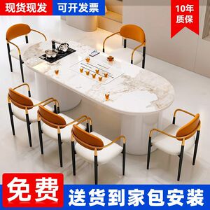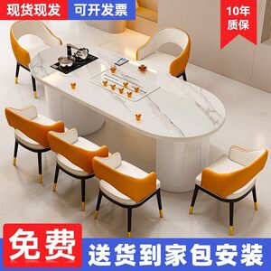轻奢岩板茶桌椅组合简约现代办公室茶桌家用客厅阳台茶桌一体整套