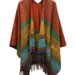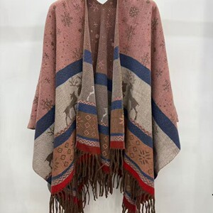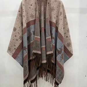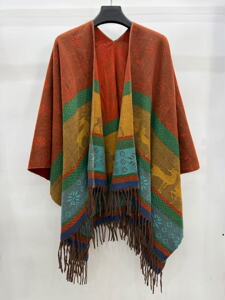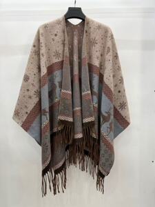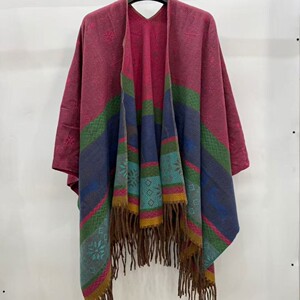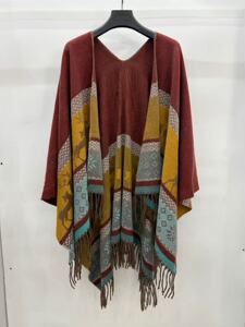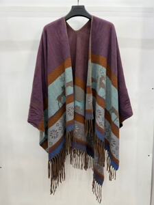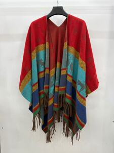 秋冬针织双面民族风披肩开叉新款旅行拍照保暖加厚披风防寒斗篷