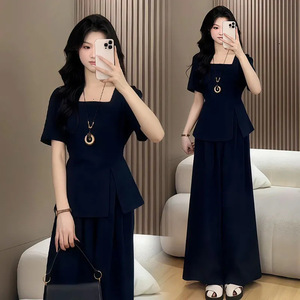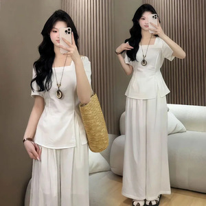女性用のロイヤルシスターのライトで大人のスタイルのスーツ、フレンチスクエアカラースリットトップ+ハイウエストスリムワイドレッグパンツ、万能スーツ