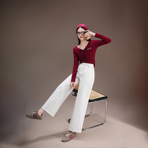 女性用のクラシックな9点ワイドレッグパンツ、ハイウエスト、ゆったり、薄手、オフホワイトのナローストレートパンツ、スリムな花のつぼみパンツ