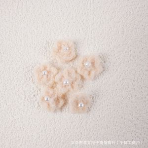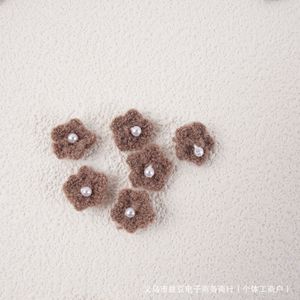 1.5CM毛线小花朵加珠子DIY饰品配件鞋子围巾装饰配件服装辅料花朵