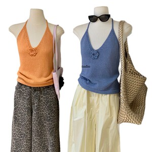 WGWE6225 ピュアラストスタイル万能ホルターネック立体フラワースリムニットベスト