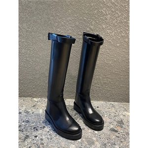 全牛皮~ann真皮厚底高筒靴长筒靴不过膝长靴马靴皮靴粗跟骑士靴女