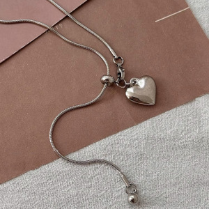 シンプルなシルバーラブプルネックレスセーターチェーン気質多用途メタルネックレスニッチデザインチェーンペンダント