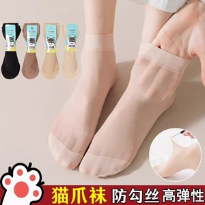 猫爪袜子钢丝袜耐穿肤色耐磨透明短袜春夏薄款女士防勾丝夏天肉色