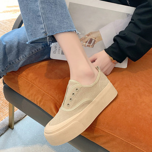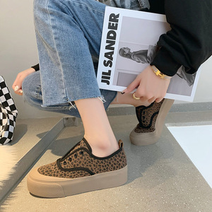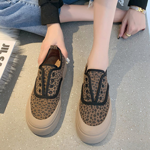 女性用ヒョウ柄キャンバスシューズ、春と秋の小柄な厚底スリッポンシューズ、レイジーダッドカジュアルローファーシューズ