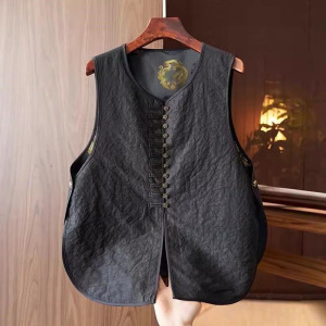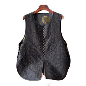 女性用の新しい中国風の黒亀ひび割れベスト、女性用の花ビーズバックルベスト、レトロな中国風、スタイリッシュでトレンディです。