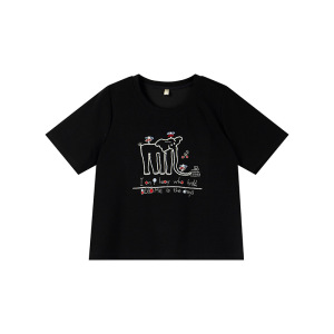Shuangtian 新しい女性の大きいサイズ夏 2025 ファットガールルーズ痩身漫画象ラウンドネック Tシャツ 9009