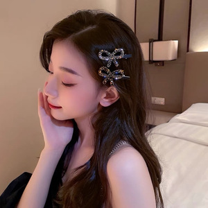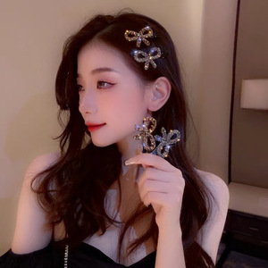 韩国复古轻奢水钻蝴蝶结发夹高级感网红侧边刘海夹头饰女发饰饰品
