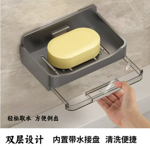 石鹸排水ボックスポータブル壁掛け収納ラック壁掛け石鹸ボックス水が溜まらない二層石鹸ラック家庭用パンチフリー