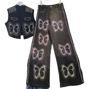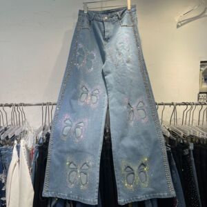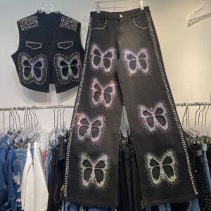 スリムで高級感のあるヘビーデニムフルダイヤモンドベスト2025夏中空蝶ダイヤモンド付きプラスサイズファットMMスーツ