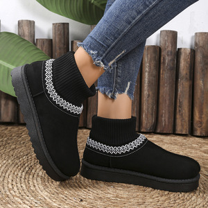 女性用スノーブーツ、冬用ファー一体型厚底ウールチューブヌバックレザーニット暖かいソックス、女性用スリッポンコットンシューズ