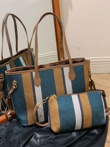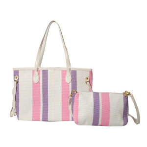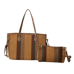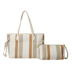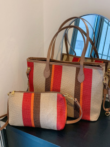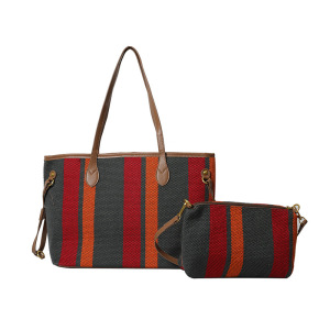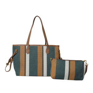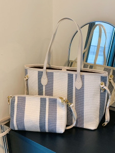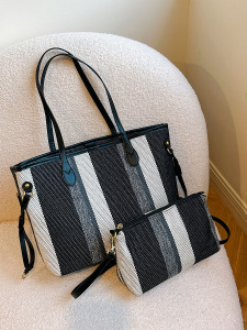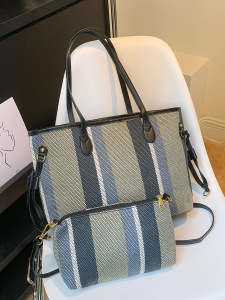 外国貿易クロスボーダーヨーロッパとアメリカのキャンバスストライプ大容量レターバッグ新しいシングルショルダークロスボディトレンディなファッション多用途トートバッグ