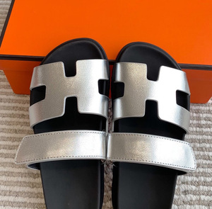 2025 春夏新作女性用スリッパ、本革ベルクロ厚底スリッパ、男性用ネットセレブビーチサンダル