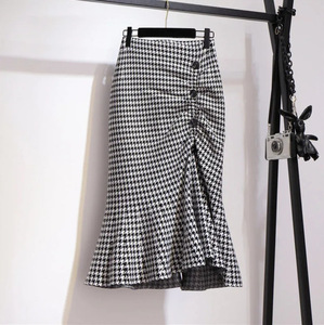 复古格子针织一步鱼尾裙女秋冬新款高腰气质中长款开叉包臀半身裙