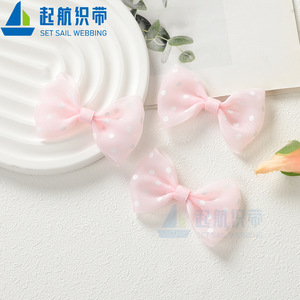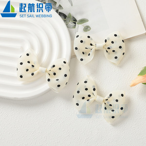黒と白の水玉模様のシフォンリボン DIY ファブリックアクセサリーバッグ靴と衣類アクセサリーヘアアクセサリー携帯電話ケース材料バッチ