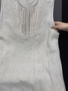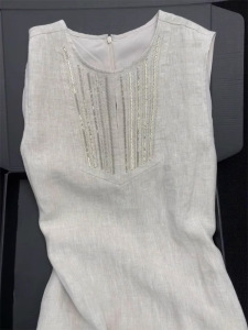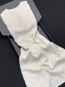 Rシングルの品質!クールでユニークでファッショナブルなオールドマネースタイルの女性用リネンホワイトノースリーブベストドレス
