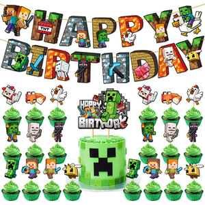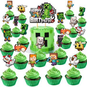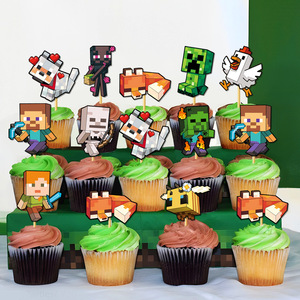 新しい Minecraft テーマ子供の誕生日パーティーの装飾ピクセルフラッグケーキインサートセット