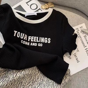 女性用の新しいスタイルの右肩半袖Tシャツ、トレンディな夏のガールフレンドの服、スリムなハイウエストのショートシャツ、シックな香港スタイルのトップス